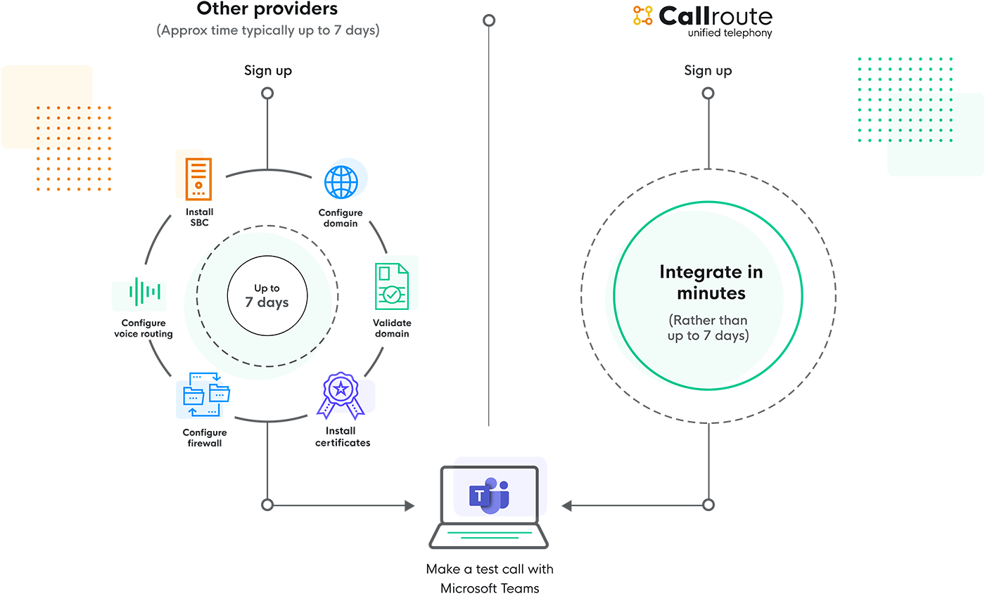 The chance to get started with Direct Routing in minutes is one of the key features that sets Callroute apart. By providing both Direct Routing and PSTN breakout in one simple solution, we effectively take the middleman out of your integration. This allows us to pre-configure a lot of the backend integration to accelerate the user experience.