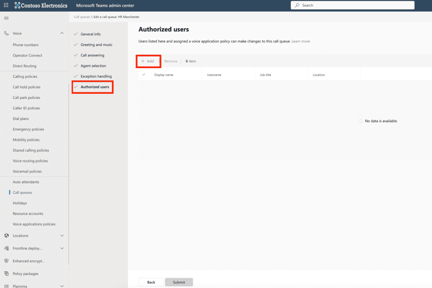 Authorized users must be enterprise voice enabled even if they aren’t going to be agents of the queue they manage. Therefore, they need to have a phone number or be enabled for Shared Calling as a pre-requisite.